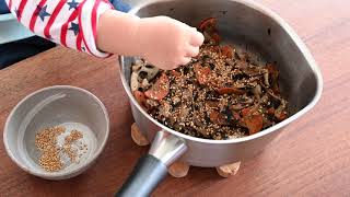 息子のぱんには、乾煎りした白ごまを指先でひねるという重大な任務を与えてみました。