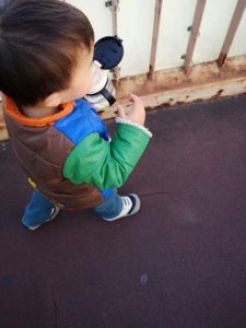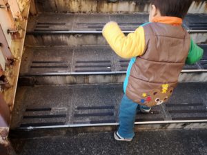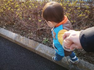 なかなか気分が変わらない時は「手をつないで、おいっちにーしよう!!」と言って、行進風に歩くとついてくることもあります(笑)この日はついて来てくれました。
