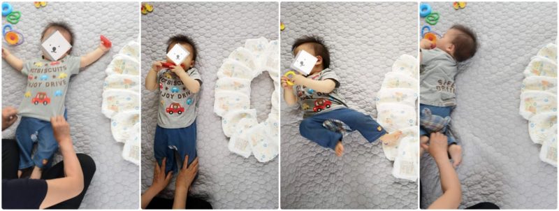 セットする(ベビーを置く)方(夫ぱん太や、母)は、寝返りを打てるようになる頃からそれはそれは大変そうでした(笑)