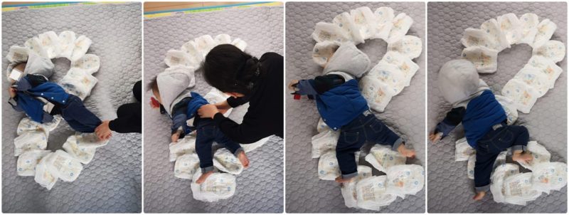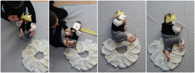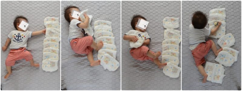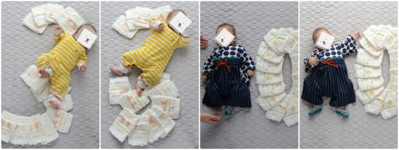オムツアートと言ってもウチの場合は、おむつと我が子を数字に見立て並べて撮るだけのシンプルなもの。とても簡単で可愛く記録にのこせたと思います。